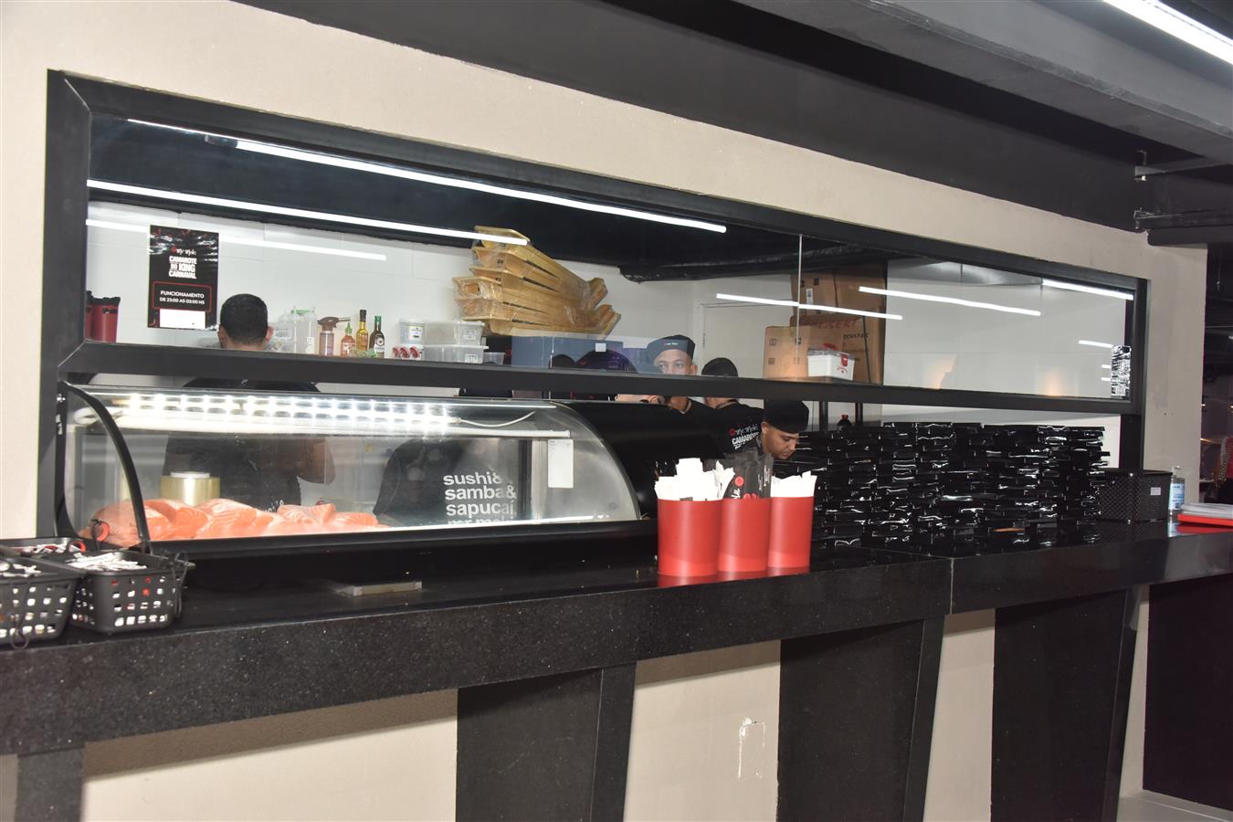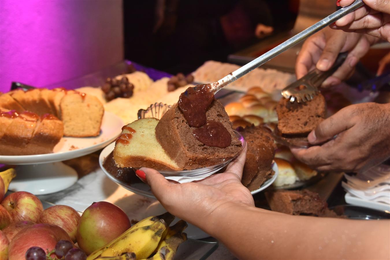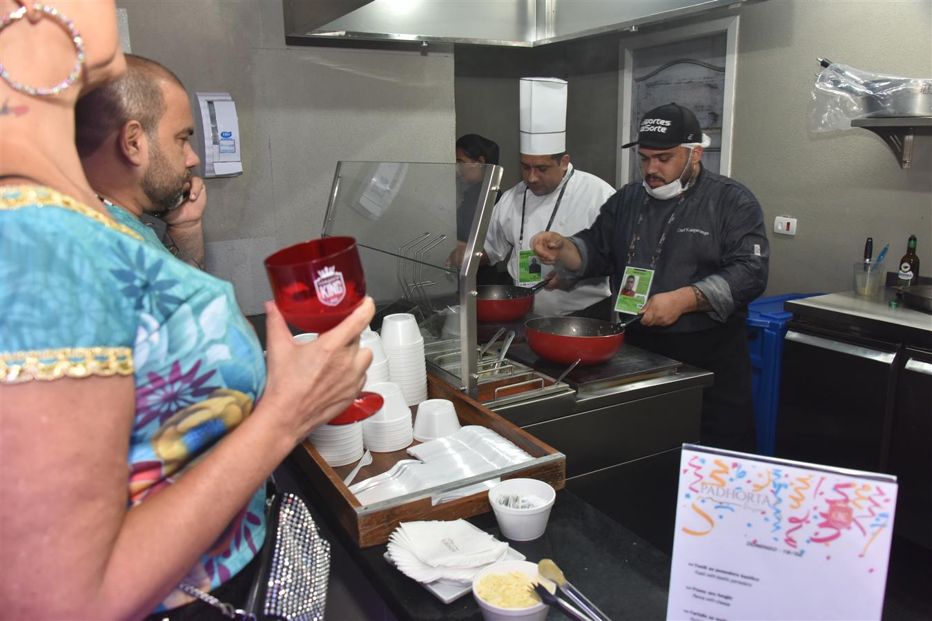 Fartura e qualidade em nosso buffet: mesa de frios, jantar, sobremesa e café da manhã, além de diversas estações de comidas espalhadas por todo o Camarote.